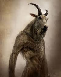 a sua cabeça de bode. Cabeça de diabo, cara de bode, barba, chifres e tudo!